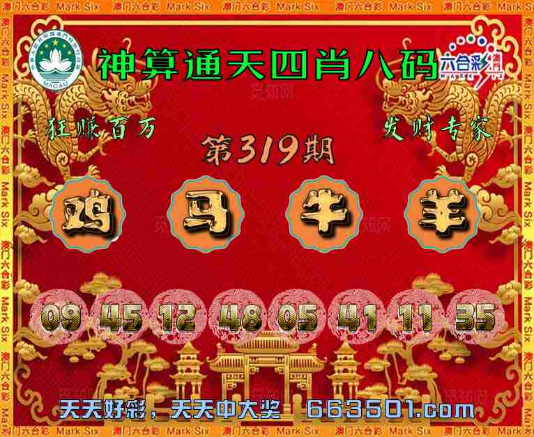 319期:〖神算通天〗 🌸四肖八码🌸【鸡马牛羊】开:鸡45准