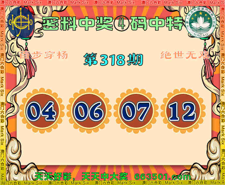 318期:『密料中奖』 🥩④码中特🥩【04.06.07.12】开:06准
