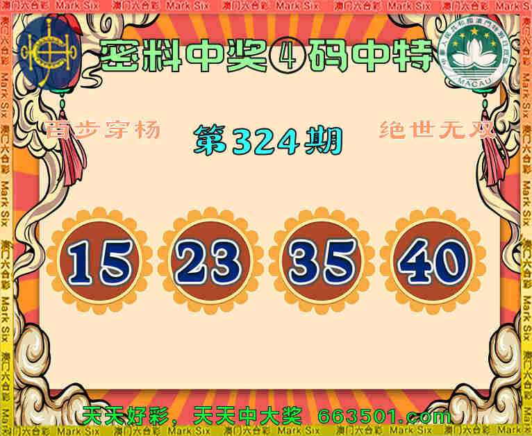324期:『密料中奖』 🥩④码中特🥩【15.23.35.40】开:15准