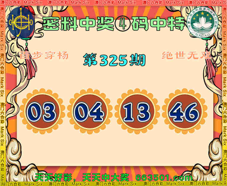 325期:『密料中奖』 🥩④码中特🥩【03.04.13.46】开:04准