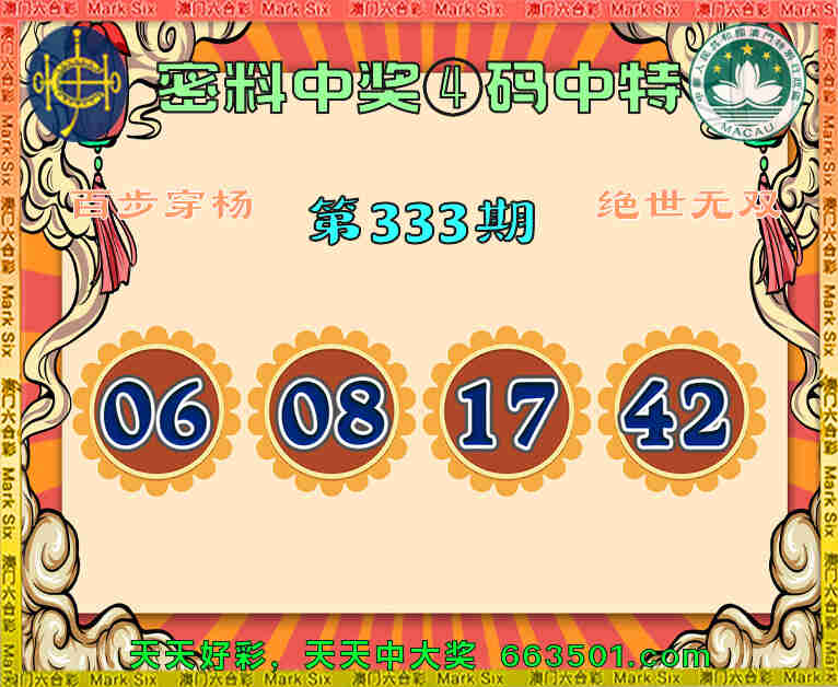 333期:『密料中奖』 🥩④码中特🥩【06.08.17.42】开:06准