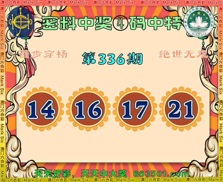 336期:『密料中奖』 🥩④码中特🥩【14.16.17.21】开:17准