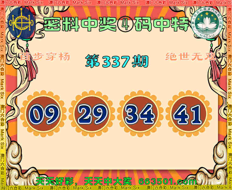 337期:『密料中奖』 🥩④码中特🥩【09.29.34.41】开:09准