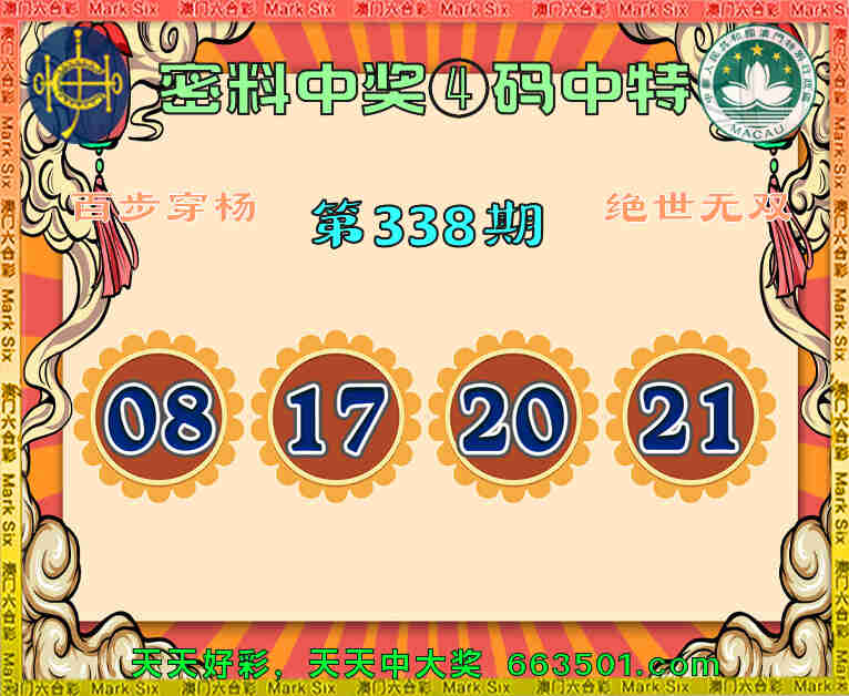 338期:『密料中奖』 🥩④码中特🥩【08.17.20.21】开:08准