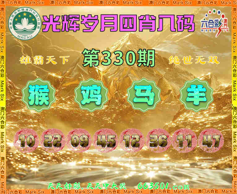 330期:『光辉岁月』 🎉四肖八码🎉【猴鸡马羊】开:马36准