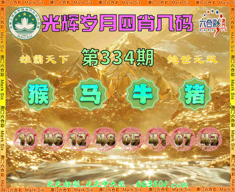 334期:『光辉岁月』 🎉四肖八码🎉【猴马牛猪】开:猴46准