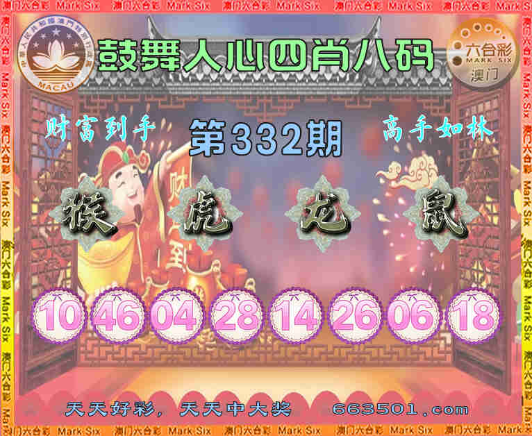 332期:『鼓舞人心』 ♦️四肖八码♦️【猴虎龙鼠】开:龙26准