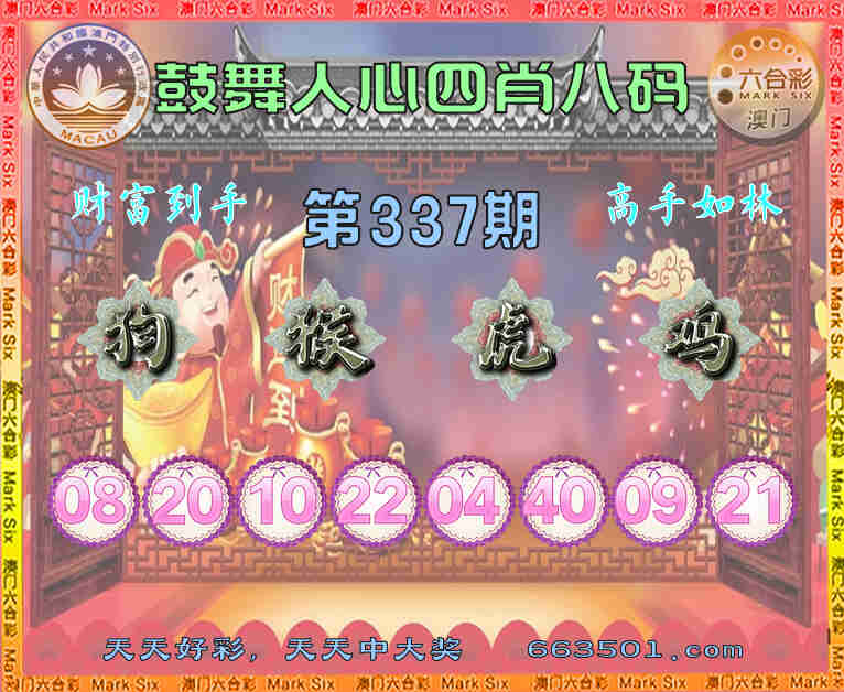 337期:『鼓舞人心』 ♦️四肖八码♦️【狗猴虎鸡】开:鸡09准